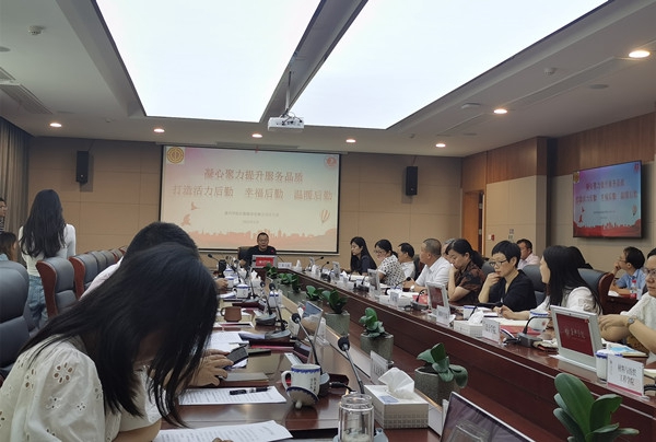6月16日下午,嘉兴学院2022年群团工作会议在行政楼会议室召开。校党委副书记吴云达、副校长周宏伟出席会议。学校各二级学院、相关部门、群团组织负责人参加会议。会议对群团组织获得的荣誉进行了表彰,后勤服务有限公司喜获“2020-2021年度嘉兴学院先进工会组织”称号。