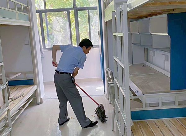 暑期,B5B6学生公寓进行了全面改造,后期清卫压力较大。同时,为便利新生生活,后勤中心为新生寝室统一配置了寝室“四件套”1200余套,需要全部组装完毕,送货入寝。迎新在即,后勤中心公寓部、商贸部面临人手严重不足的窘境。为此,后勤中心党委面向全体党员发出号召,兄弟部门党员、预备党员、入党积极分子怀抱着为师生服务的热情与“我是党员我先上”的责任感踊跃报名,争相投入到新生寝室清卫、布置工作中来。