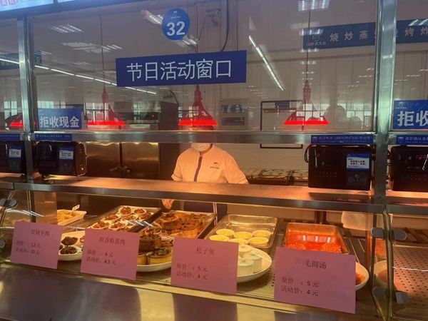 佳节及重大活动送温暖是饮食服务中心的优良传统。饮食服务中心持续把“用心服务”举措落到实处,把爱与责任融入一餐一饭,努力让全校师生吃得安心、放心、舒心,逐步提升师生就餐的满足感和幸福感。