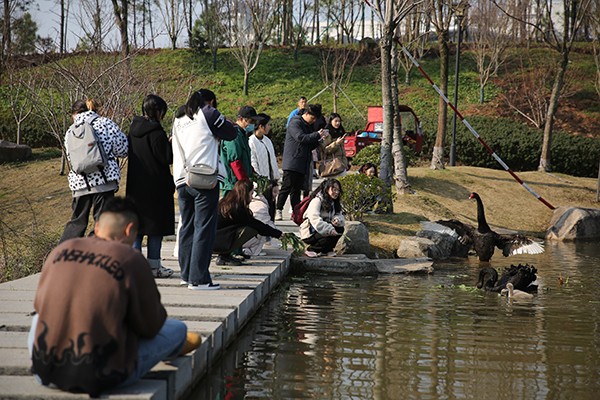 同学们与天鹅互动的快乐,将会成为他们学习生涯中一次特别难忘的经历。为推进服务育人的初心,学校也会推出更多共建互动活动,让更多的同学参与到绿化校园文化建设中来。