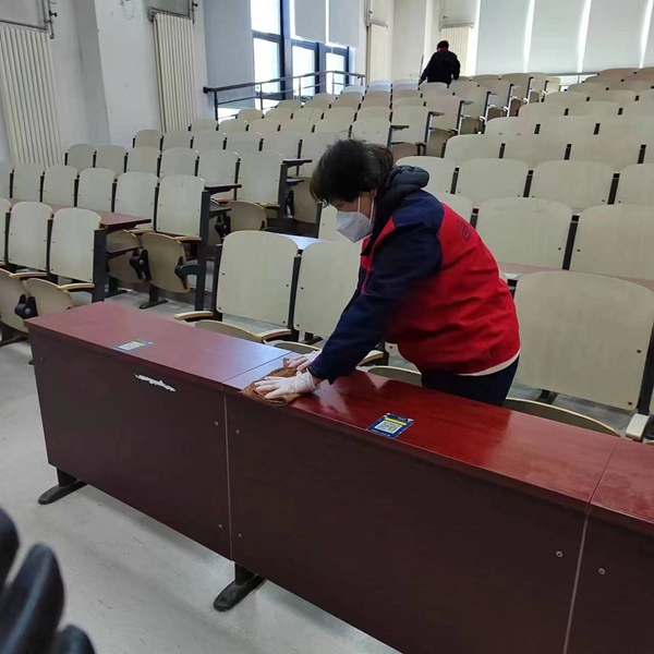3月10日起,物业办公室负责统筹安排各部门职责,积极与教务处沟通细节工作,准备9个展板。为做好疫情防控工作,准备100个口罩,2瓶免洗手消等防疫所需物资。同时,为创建温馨、舒适的考试环境,环境管理和楼宇管理人员认真做好校园环境和楼宇内保洁的工作。同时还调配了数名保洁员投入到考场楼宇的保洁工作中,对保密室、考试场所、通道、区域、桌椅等进行清洁、消毒,张贴完成标识,进行彻底的大扫除和预防性消毒,并将2套被褥送至保密室。工程技术人员对门窗、桌椅、照明、采暖、窗帘进行全面检修,确保设备的正常使用,完成考务办电话移机工作。