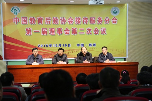 2015年12月19日,中国教育后勤协会接待服务分会第一届理事会第二次会议在江苏扬州大学旅游烹饪学院召开。教育部机关服务局局长、中国教育后勤协会常务副会长、接待服务分会理事长高聚慧出席会议并作重要讲话;扬州大学洪涛副校长到会并致欢迎辞。来自全国20多个省、自治区的60个理事单位的代表参加会议。会议由接待分会秘书长许崇义主持。