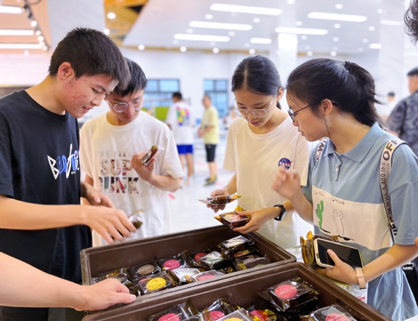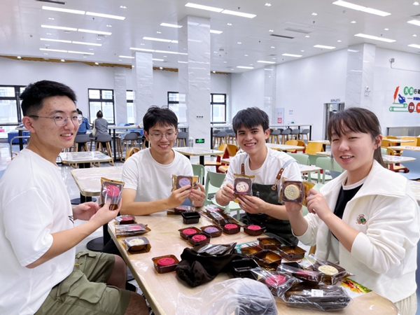 餐厅里欢声笑语、气氛热烈。同学们三五相聚,品着美味的月饼,赏着窗外的圆月,聊着家乡的趣事,思念与快乐撞了个满怀。