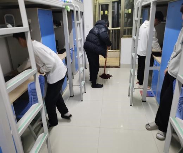 为营造文明整洁的寝室环境,12月17日晚我院组织开展了宿舍寝室大扫除活动,我院学生管理副院长井厚勇带领全体辅导员深入学生宿舍进行指导检查。