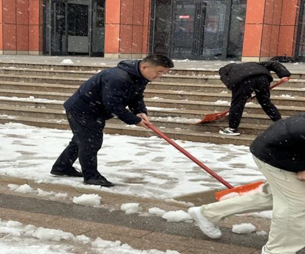 为保证全校师生的出行安全,营造整洁的校园环境。在雪后,天气虽然寒冷,但师生干劲十足,大家不顾天寒路滑,有的扫,有的铲,有的推,有的倒,齐心协力,相互帮助,时不时打趣鼓励,呈现出一派热火朝天的扫雪场景。经过1个多小时的认真清理,6号教学楼周边道路焕然一新,为大家雪天行走安全提供了良好的环境。