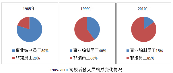 现在,高校后勤系统人员中,事业编制“老人”逐年退休减员、占比不到15%,人事关系代理、合同制用工、“劳动派遣”等“非编”人员超过85%,社会化用工已经成为主体力量,对学校认同感、归属感都与以往大不相同,要求行业组织反映不同身份劳动者的诉求。