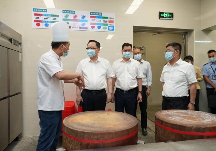6月3日,嘉兴市副市长戴锋来我校桂园餐厅开展食品安全工作监督检查。嘉兴市市场监督管理局党委书记、局长李陈源,嘉兴市市场监督管理局经开分局局长潘庆,我校党委副书记吴云达,党委委员、副校长王立玮陪同检查。