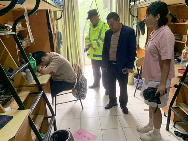 学生突发不适的应急演练设置在勤学苑5-7号楼学生公寓。“阿姨阿姨,我们寝室有同学身体不舒服……”在勤学苑5-7号值班室,一名学生急匆匆地从寝室跑来向值班阿姨求助。值班员一边跟随学生赶往寝室,一边了解学生的所在学院、姓名、寝室号等相关信息,并第一时间向楼长、保卫处、校医院进行汇报。待楼长赶到寝室后,及时询问学生感受并对其进行安抚,同时联系学生所在的二级学院辅导员说明情况。5分钟后,相关人员陆续抵达现场,在校医院医生的诊断后,由保卫处工作人员和二级学院辅导员共同将学生送往医院进行医治。