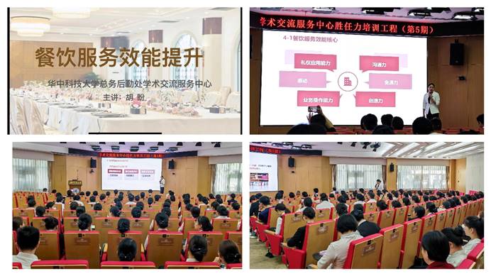 为进一步提升学术交流服务中心餐饮服务团队效能, 2024年5月27日下午,学术交流服务中心在八号楼报告厅开展了胜任力培训工程第五期课程—餐饮服务效能提升。中心党总支书记张祖军、中心副主任严炜出席了本次活动,共计100余名员工参加培训。