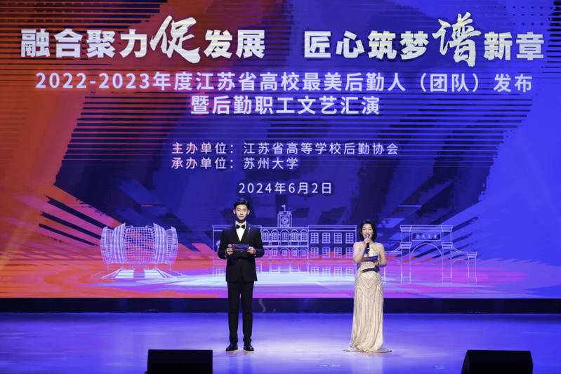 6月2日,“融合聚力促发展 匠心筑梦谱新篇”2022-2023年度江苏省高校最美后勤人(团队)发布暨后勤职工文艺汇演在苏州举行,活动由江苏省高等学校后勤协会主办。会上,江苏科技大学获评“江苏省高校学生劳动教育示范基地”,后勤管理处处长、后勤集团总经理薛泉祥代表学校领取示范基地牌匾。后勤集团饮食服务中心曹福根荣获“最美后勤人”称号。后勤管理处、后勤集团以我校原创歌舞剧《早安,江科大》代表学校参加本次汇演。