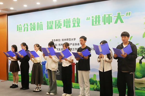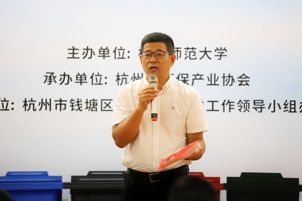 区城市管理局负责人强调,垃圾分类工作重在行动,希望师生继续深入贯彻落实习近平总书记重要指示精神,做垃圾分类新时尚的引领者、传播者和实践者,以新时代强烈责任感、使命感和紧迫感推进“垃圾革命”提质增效。钱塘区高校垃圾分类达人、杭州电子科技大学学生代表从宣传方式、主题活动、志愿者服务等方面作了经验分享。