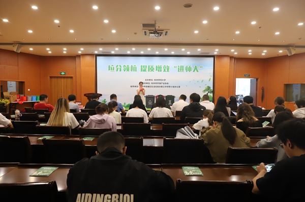 为进一步宣传校园垃圾分类相关知识,提升学生垃圾分类意识,推动校园生态文明建设迈向新台阶,6月12日,杭州师范大学下沙校区物业服务中心联合钱塘区综合行政执法局在下沙校区叙伦厅开展了“垃分领航 提质增效”为主题的垃圾分类教育讲座。基础部党支部书记方莉、中心主任袁坚春、浙江省教育后勤基建协会物专会执行秘书王术海、钱塘区综合行政执法局调研员刘合柱,以及宣传部、学生工作部、校团委、下沙校区管委会办公室负责人和学生代表等共120余人参加。
