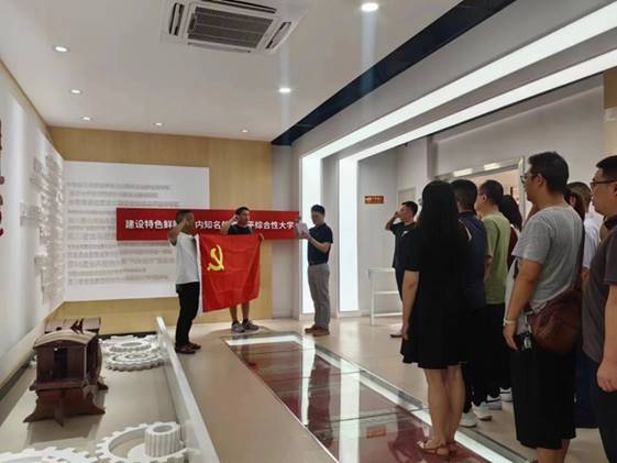 党员同志们认真观览校史后,全体党员面对党旗,在西华大学医院与幼儿园党支部书记李红东的领读下,重温入党誓词,以铿锵有力的声音,再一次深刻表达对党忠诚、为党的事业奋斗终身的决心和愿望。