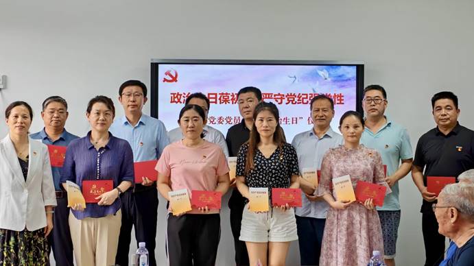 为庆祝中国共产党成立103周年,深入推进党纪学习教育,落实省委《关于规范离退休干部党员“政治生日”活动的通知》要求,强化党员党性修养,铭记入党初心,7月2日下午,山东师范大学后勤党委在山东师范大学长清湖校区举行“政治生日葆初心,严守党纪强党性”党员集体“政治生日”仪式。校党委常委、副校长王泽光,后勤领导班子以及上半年入党的党员参加活动。