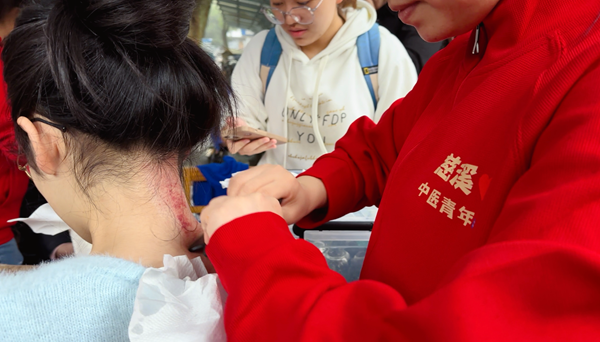 中药香囊制作、针灸推拿体验、中医茶饮、中医诊疗、中医食疗、艾草手锤制作、中医药材展示……11月14日中午,一场传统与现代交融的中医药文化集市在宁大主校区启动,为书香校园增添一缕药草香。虽天公不作美,但创意满满的集市吸引了众多师生打卡,反响热烈。