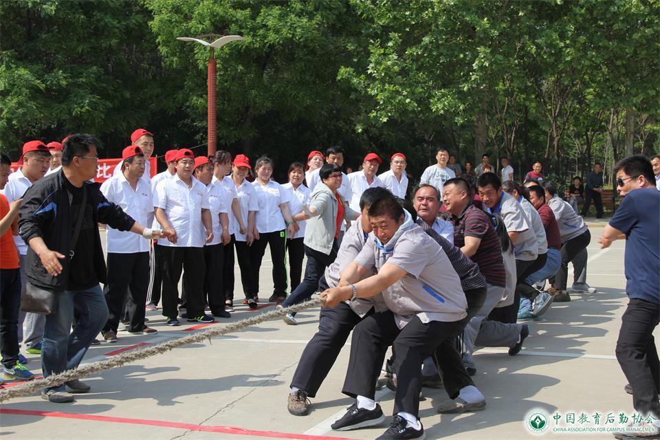 本届拔河比赛各单位积极组织,广大员工踊跃参加,共有8支代表队参加比赛,每支代表队由10名男职工和5名女职工组成,各代表队还统一了工装,体现后勤特色。当天下午共有200余名职工到场加油助威,比赛现场气氛高涨,经过近两个小时的激烈角逐,东校区饮食服务中心和劳动服务公司分别获得冠亚军,接待中心和饮食供应中心获得三四名。集团领导现场为获奖单位颁发了奖杯。