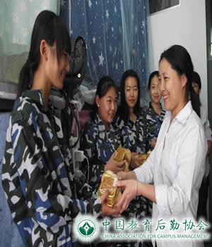 9月14日中午,值班员们来到新生宿舍,将热情的的问候通过象征“团圆”的月饼和“平安”的苹果,传递给正在军训期间的新生们,并送上对他们的美好祝愿。来自河南洛阳历史学院的刘同学表示,这是她第一次离开家过中秋,没想到刚来学校不久在宿舍就收到这样一份惊喜,原本是有点伤感的,现在心情特好、特美。“圆圆的月饼虽然并不贵重,但值班员叔叔阿姨给予的这份心意却是满满的,让我们感受到了家的温暖,虽然不能回家和父母在一起过节,可这个中秋节却给我们留下了感动的记忆!”身着迷彩服文学院的新生王同学说道。