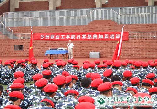 每年,沙工都要邀请有经验的培训师到校开展急救知识培训。通过培训,让学生了解急救的基本知识要点,掌握正确的方法,以此来加强师生的自我安全保护意识,降低意外伤害的损失和发生率,并大大提高师生的自救互救能力,从而起到“宣讲急救知识,构建平安校园;教育入学新生,增强生命脉搏”的作用。