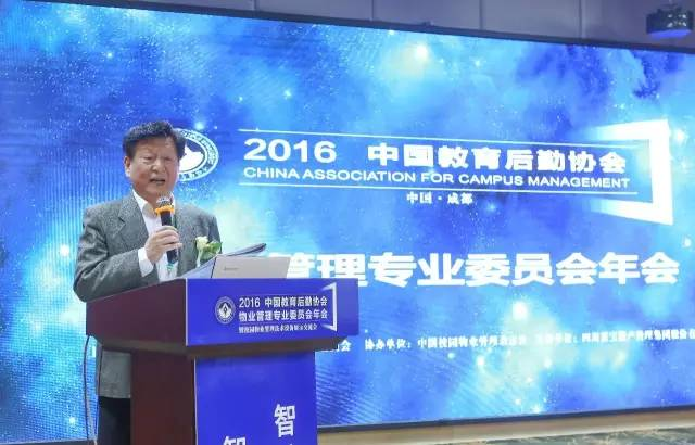 中国教育后勤协会会长程天权首先发表致辞。他代表中国教育后勤协会对中国教育后勤协会物业管理专业委员会(2016)年会的隆重召开表示热烈祝贺,对与会领导、各高校后勤人员以及企业代表的到来表示热烈欢迎,向给予本次会议大力支持的四川省高校后勤协会和四川省高校后勤系统的同仁表示衷心感谢。程会长表示,物专会在朱宝铜副会长的亲自带领下,在各位主任、秘书长、全体委员单位的共同努力和大力支持下,取得了突出成绩,值得肯定。他希望,物专会站在新的起点上,认真总结经验,深刻理解和落实协会一届四次理事会的工作要求,理清下一步的工作思路,明确新一年的工作重点,更好地发挥行业组织的作用,进一步做好五个方面的工作:一是积极推进组织建设、专业化队伍建设、制度建设,切实完善内部管理制度;二是要秉承兼容并包、开放办会的原则,做好会员发展和服务管理工作;三是积极适应校园物业服务管理开放、多元、规范发展的趋势,引领行业健康发展;四是积极开展校园行业标准规范研制工作,为校园物业服务市场开放与规范监管创造条件,提供依据,奠定基础;五是要整合各类优质资源,搭建平台,探索打造校园物业服务管理开放、合作、互动、共赢的协同创新发展体系,努力推动校园物业由传统粗放管理向现代智慧物业管理的转型升级。程会长还表示,希望物专会在推进校园物业服务管理社会化、专业化、标准化、现代化等方面做出新的、更大的贡献,并预祝本次大会圆满成功。