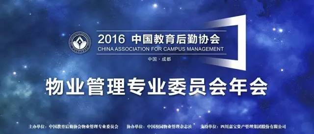 2016年12月5日上午,由中国教育后勤协会物专会主办,《中国校园物业管理》杂志社承办,四川嘉宝资产管理集团股份有限公司提供支持的中国教育后勤协会物专会(2016)年会在成都隆重召开。中国教育后勤协会会长程天权,中国教育后勤协会副会长、物专会主任朱宝铜,中国教育后勤协会副会长兼秘书长黎玖高,四川省教育厅学校后勤与产业处处长、中国教育后勤协会副秘书长、四川省高校后勤协会秘书长王方文,四川省房地产业协会专职副会长郑友才,中国物业管理协会副会长姚敏,成都市物业管理协会副会长兼秘书长巫庆敏,物专会副主任周宗安、韦曙和、吴志忠、陈鹏、宋希博、刘君彬、刘宏进、李永琪、龚水平、徐显斌、李锁全、李志平、赵伟,物专会秘书长刘德明,物专会副秘书长王永胜、唐浪、刘仁龙、刘宝、李春俐、张洪、罗树明、宋伟华、吴建强、薛萌、张勤春、高文田、杨书元、王兴凯、葛建华,以及部分地方政府主管部门和行业协会领导、高校后勤负责人、物业服务企业、展商代表共计540余人出席了年会。年会由物专会秘书长刘德明主持。