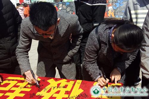 活动最后,近千名学生在“构建安全宿舍,禁用违规电器从我做起”的横幅上签下了自己的姓名,通过自己的行动来表达对禁止使用违规电器制度的赞同与支持。