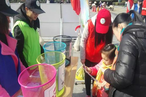 3月4日上午,应舟山市环境卫生管理处邀请,我校学生宿舍“三自”委员会组织了7名垃圾分类志愿者至沈家门凯虹广场开展了垃圾分类宣传公益活动,这是我校“三自”会志愿者们首次参与此类活动。