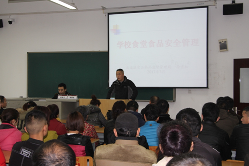 为进一步落实食品安全法规,提高餐饮保障能力,提升餐饮服务人员管理水平,确保食堂食品安全,不断提高我校餐饮服务保障能力和食品安全管理水平。3月24日下午,后勤管理处邀请云龙区食品药品监督管理局企业食堂科对学校食堂从业人员100余人进行食堂食品安全管理专业知识培训。培训由企业食堂科科长徐雪松、副科长刘龙丰主持。