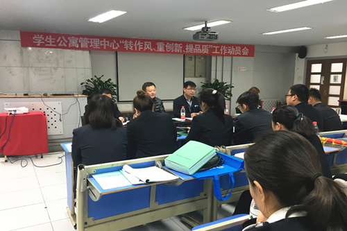 第二阶段是交流学习,结合学生公寓管理中心的动员会,各中心就作风建设年的相关工作进行交流和讨论,包括工作礼仪、质检制度、工作制度等。