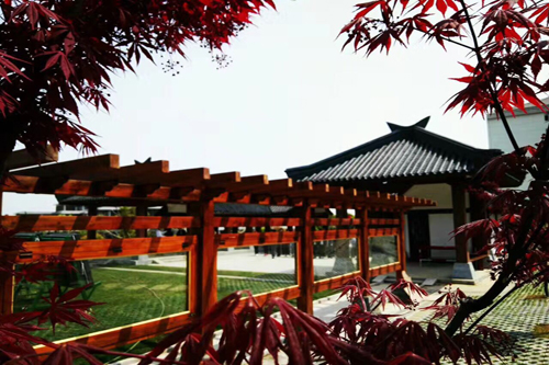 在射艺场景观设计上,后勤管理服务中心选取了红枫、银杏作为射艺场绿化的主要树种,衬托着射艺场“黑瓦灰墙”的肃穆、庄严、大气,同时也象征着“传统礼射技艺”的源远流长。