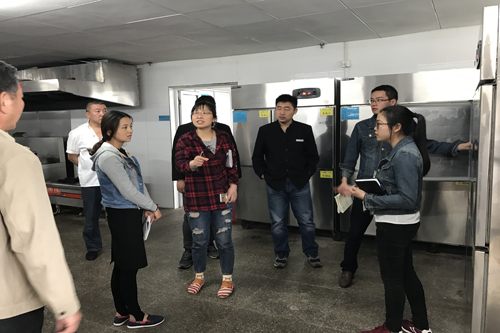 检查中,事业部专职安全质量监管员顾金奎带领大家,从一楼到二楼,从粗加工间到烹饪间,从规章制度到文化建设,一一进行了仔细的检查,找出了不足之处,并互相交流讨论,提出了改进建议。顾金奎还向大家详细介绍了“示范学生食堂”建设各项工作的要求、实施标准、注意要点及规范的操作流程。