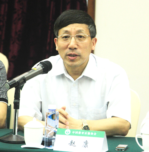 广东省教育厅巡视员赵康致辞,首先对中国教育后勤协会会长会的召开表示祝贺,随后介绍了广东省教育后勤的总体情况,对中国教育后勤协会给广东省教育后勤协会的支持表示感谢。