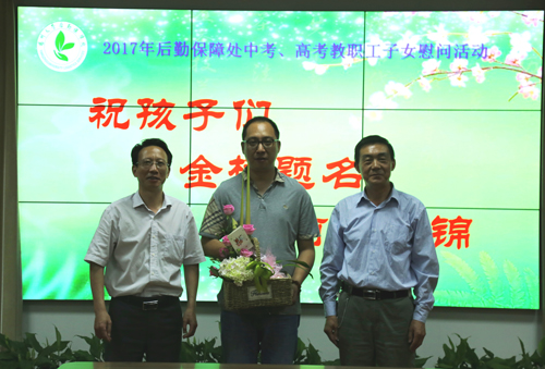 会上,陶春明代表处党政慰问今年参加中、高考子女的职工,并通过职工转达对其子女的美好祝福,鼓励其子女放松心态,调节好心情,以饱满的精神状态迎接考试,以优异的成绩实现自己的人生理想。他说,后勤职工平时工作很辛苦,承担着服务育人的工作,甚至都顾不上自己的家庭和孩子,今天通过这样的方式对职工表示慰问。最后,陶春明、李永刚将后勤工会准备的“高中三元”送给教职工。
