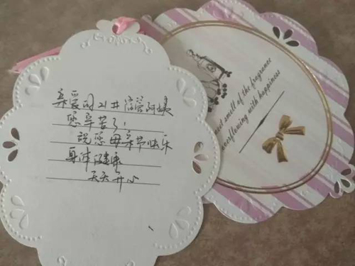 5月14日,在母亲节来临之际,生活区各公寓楼的学生纷纷为各自楼的值班阿姨送上了节日祝福和小礼物,表达了真诚的祝福。