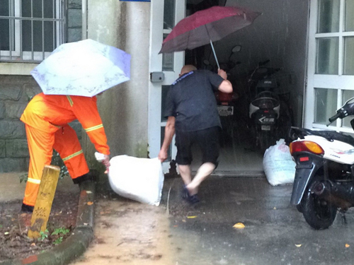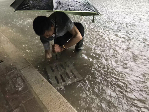 雨情就是警情,大暴雨来临后,校园中心迅速启动防汛应急预案,王平龙主任冒雨赶赴各辖区,查看汛情,指挥抗洪抢险。全体员工也都全力投入抗洪抢险工作中。新模范马路校区校园物业员工冒雨检查被淹路段,清理疏通雨水井道,加快排水速度。青石村198-199号员工值守在地下室泵房,保证水泵不间断排水。学府苑员工及时堆放好沙包、挡水板,防止雨水倒灌入住宅楼。体育场馆物业员工及时清理疏通体育馆三楼平台的排水管道,消除了雨水倒灌入风机房的险情。浦江综合楼、生工机械楼的员工不间断巡查窨井、下水道排水情况,及时清扫积水,并放置防滑警示牌,提醒过往师生注意安全。