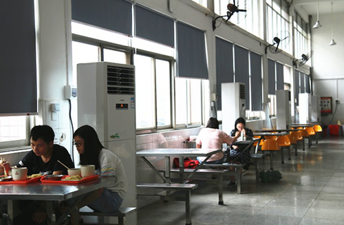 针对这个情况,学校后勤服务中心讨论决定在食堂安装空调,为同学们提供一个舒适的饮食环境。现在,一走进食堂,就能感受到食堂的丝丝凉意。空调一经开放,来食堂就餐的学生又增多了,甚至在期末复习期间,不少同学选也择在食堂好好复习。