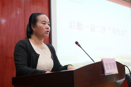 会议在雄壮的《国歌》声中拉开序幕。会上,胡宝华处长代表后勤管理处作了《2016年工作总结及2017年度主要思路报告》,分工会主席何云飞同志代表后勤分工会作了《2016年后勤分工会工作报告》及通报校三届七次提案反馈情况,分工会福利委员洪银娇同志对《2016年工会经费使用情况》进行了通报。