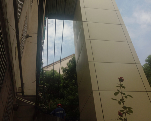 赵建岭副校长一行在段雄副厅长和李奇副主任的陪同下来到了位于南京市玄武区的新庄花园进行现场考察。据玄武区增梯办副调研员聂猛介绍,玄武区新庄花园是一个老旧小区,每栋楼有七层,当初建设时并没有考虑到电梯安装问题,但随着小区老龄人口的增多,且又住在高层,生活不太便利,便产生了增设电梯的民生要求;但住在低层的住户安装电梯的要求不是太强烈。在双方的意见不太统一的情况下,在政府、街道、社区和居民的多次协商下,最终达成了增设电梯的协议。在现场,大家看到,安装电梯的厂家工作人员正在紧张作业,与楼层同一高度的独立的电梯井已建成,电梯井与楼层入口进行半层入户连接并拟全封闭,以在方便居民出入的同时确保人身安全。