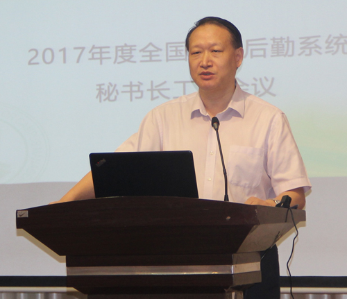 7月24日,由中国教育后勤协会主办的“2017年度全国教育后勤系统秘书长工作会议”在黑龙江省牡丹江市召开,近80位来自中国教育后勤协会及各个分支机构、各省、自治区、直辖市教育(高校、学校)后勤协会(研究会)的秘书长和特邀代表出席了会议。中国教育后勤协会会长程天权、中国教育后勤协会常务副会长高聚慧、教育部发展规划司基建管理和后勤改革处调研员刘彦波、黑龙江省教育后勤管理协会理事长、哈尔滨师范大学副校长马明、黑龙江省教育后勤管理协会副理事长、省高等学校后勤管理指导中心主任许庆禄等领导受邀莅临会议。会议由中国教育后勤协会副会长兼秘书长黎玖高主持。
