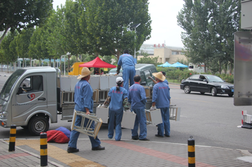 13日早上开始,各项准备工作有序进行,物业环境管理部员工对会场进行了彻底冲刷和清洗,对整个会场进行清扫和保洁。各项工作面面俱到,一丝不苟。