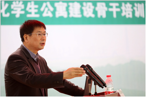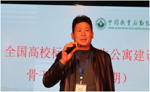 黎玖高秘书长在讲话中指出,高校学生公寓工作是支撑高校后勤保障体系的一项庞大事业和重要环节,是高校育人工作的重要阵地。寓专会前期成功举办了三期标准化培训,进行了打造培训品牌的成功尝试。培训班为全国学员设计提供精品课程,组织学习最新管理理念、交流最新实践经验,促进全国区域、校际间的相互学习和交流,实现了汲取、借鉴、交流、传播和促进的目的。希望寓专会把培训做深、做透,继续出精品,同时也供协会其他专委会学习借鉴。他还指出,学生公寓工作要积极适应国家治理体系创新和教育领域综合改革的最新形势要求,不断引入新模式、新理念、新科技,在“智慧公寓”、“绿色公寓”建设方面取得新的进展和突破。最后,他勉励大家先当“学者”,再当“使者”,学以致用,在各自工作岗位上不断做出新贡献。