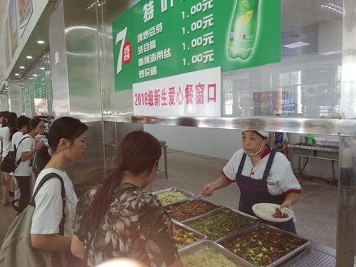 “一张爱心劵,一生九院情”,当2018级的会计新生来自贵州省麻江县的布依族同学王小飞拿着印着这十个字的爱心餐劵来到九江学院学生三食堂爱心窗口领取免费午餐的时候,小伙子很动情的告诉我们,没想到学校饮食服务中心想到这么周到,为了节省费用,自己一个人不用家人送,带着生源地贷款来到九江学院,没想到学校第一时间让自己这么感动。一顿爱心餐让我第一时间爱上了九院。
