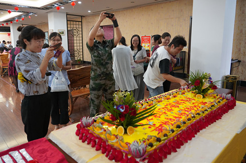 为了做好这次活动,教工餐厅提前准备了长1.8米的教师节感恩大蛋糕、定制了教师节书签,在餐厅大厅进行免费赠送,引得老师们纷纷拍照留恋。许多老师高兴地说,这个教师节好温馨哦!好有幸福感哦!