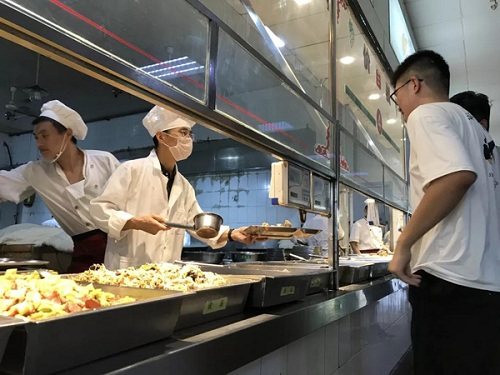 同日,中心班子成员还对东、西校区学生食堂进行了检查,重点查看了食品安全、餐具卫生、就餐大厅环境卫生、人员到岗情况等,现场对大厅内张贴物管理、服务热线标识悬挂等进行了指导,对后厨设施优化、用电线路安全、菜品研发等工作提出了要求。经检查,各食堂开餐工作准备充分,新学期工作秩序良好。