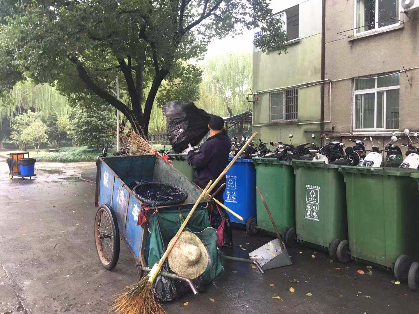 马路工和保洁员们每天早早来到学校,对校园道路、绿化带等公共区域进行全面清扫。他们冒着细雨,用手一点一点地认真清理粘在地面上的垃圾;同时沿路清扫道路积水和被雨水冲积的泥沙、落叶等杂物垃圾,防止下水管网堵塞,确保道路干净整洁、排水畅通。