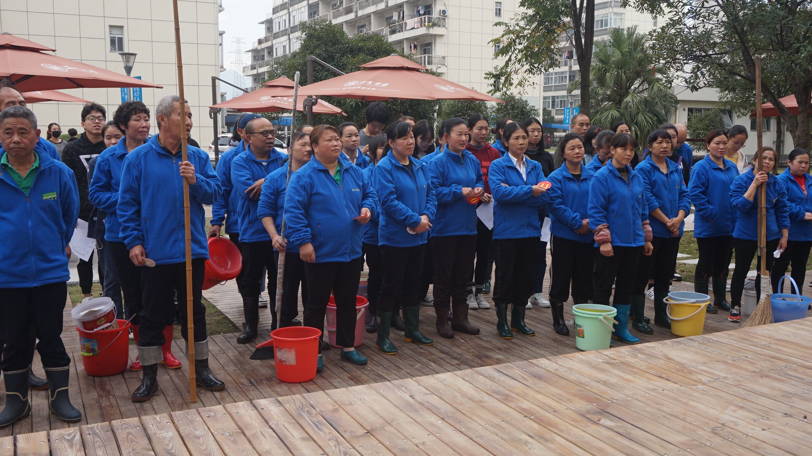 温州大学后勤集团宿管服务公司于11月28日在步青学区开展技能保洁服务大赛,暖暖的冬日里,宿管员们热情高涨,早早地就来到了比赛现场,个个拿着比人还高的扫帚积极地等待着。