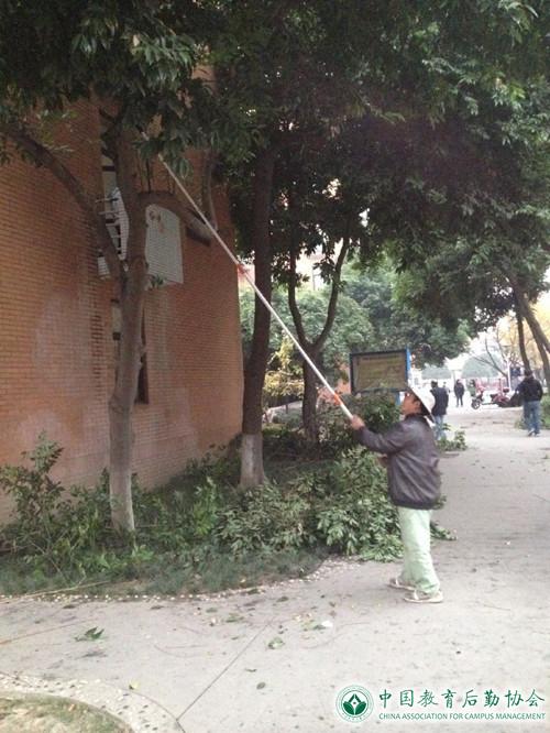 冬季绿化养护工作是全年绿化养护工作的重要环节,主要的工作重点为浇水、防寒、修剪、病虫害防治。随着日照时间变短,树木从夏季快速生长阶段进入了“休眠”期。为此,校园物业服务中心为校园主干道的树木进行了科学的涂白处理,涂白剂的主要成分是氯化聚乙烯及石硫合剂。树木冬季涂白,一方面有助于预防寒害冻害,另一方面对于病虫害同样具有预防作用。同时,对校园内,主要是学生公寓周围的乔木、灌木、绿篱,中心进行了常规性的整形性修剪,保证学生公寓采光充足。除此之外,校园内还有部分树木喜暖,因自身的避寒能力不强,气温过低就可能造成树木死亡,中心及时安排绿化员工搭棚支架,给它们罩上了防冻罩。