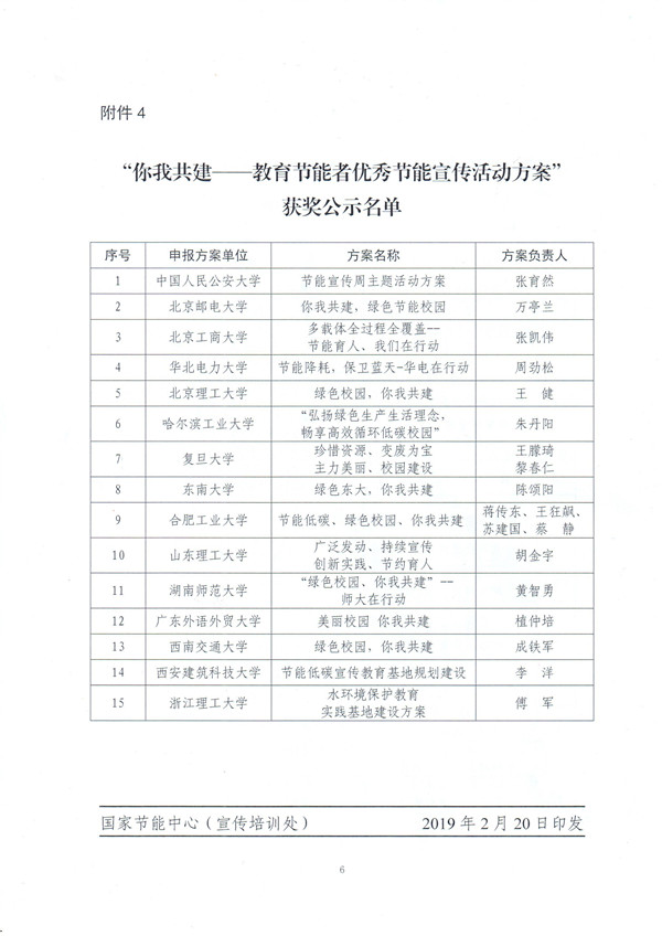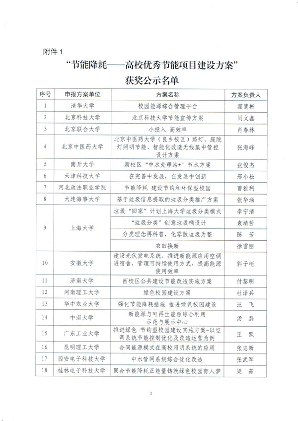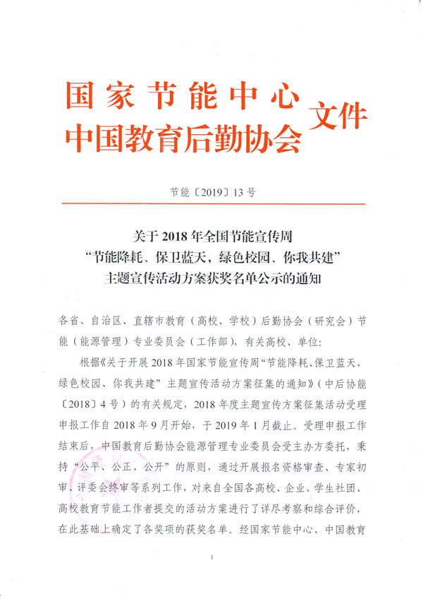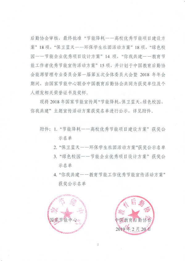 关于2018年全国节能宣传周 ”节能降耗、 保卫蓝天,绿色校园、 你我共建“ 主题宣传活动方案获奖名单公示的通知