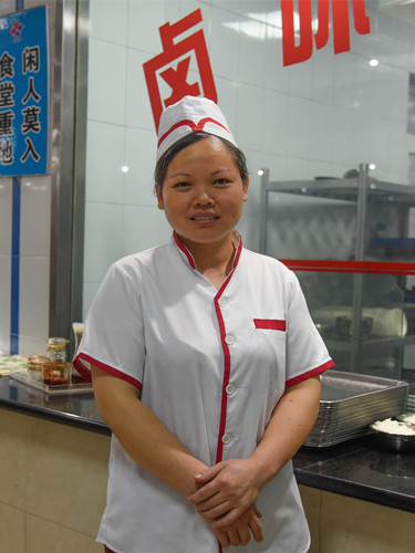 开餐前她认真核实每一个菜肴的标价,确保销售价格与实物一致,为其他同事的操作提供正确的标杆,也让广大师生的每一角钱都花得明明白白。由于菜价不是整数,对于初中学历的她来说,有时难免在每天数百上千次的窗口服务中偶有误打卡的时候,即使服务对象有没有发现,但是哪怕只是多刷了一毛钱,她都第一时间向师生诚恳道歉并进行退卡操作。