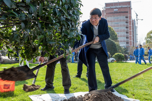 后勤服务与管理中心李虎处长为本届环境文化节致开幕词,他指出我校历来非常重视校园环境建设,多次被评为环境示范校园,优雅的校园环境和校园文化对学生的成长与发展起着陶冶情操、砥砺德行、磨炼意志的作用。希望通过环境文化节这个平台,鼓励同学参与到环保事业中来,将环保理念惠及校园中的每个人。最后,副校长吕金海宣布杭州电子科技大学第十二届校园环境文化节开幕。开幕式后校领导以及各部门负责人及学生参加了植树活动。