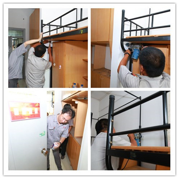 温馨宿管,带给您家的温暖。宿舍管理服务中心根据学校和各二级学院要求,提前做好新生床位安排,检查宿舍、确认床位号、打扫卫生到各项资产配置、更新寝室设施,有条不紊地做好各项住宿环节,积极引导确保新生顺利入住;制作了住宿服务指南展板、新生必读寝室“宝典”宣传栏,介绍寝室入住手续、楼内服务项目、安全提醒等注意事项,利用学生宿舍(公寓)楼下的黑板报进行迎新主题宣传,在宿舍(公寓)楼进口处电子显示屏上滚动播出欢迎新生、安全防范等内容;同时安排服务人员为新生及家长答疑解惑并提供必要的帮助,带给新生家一般的温暖。